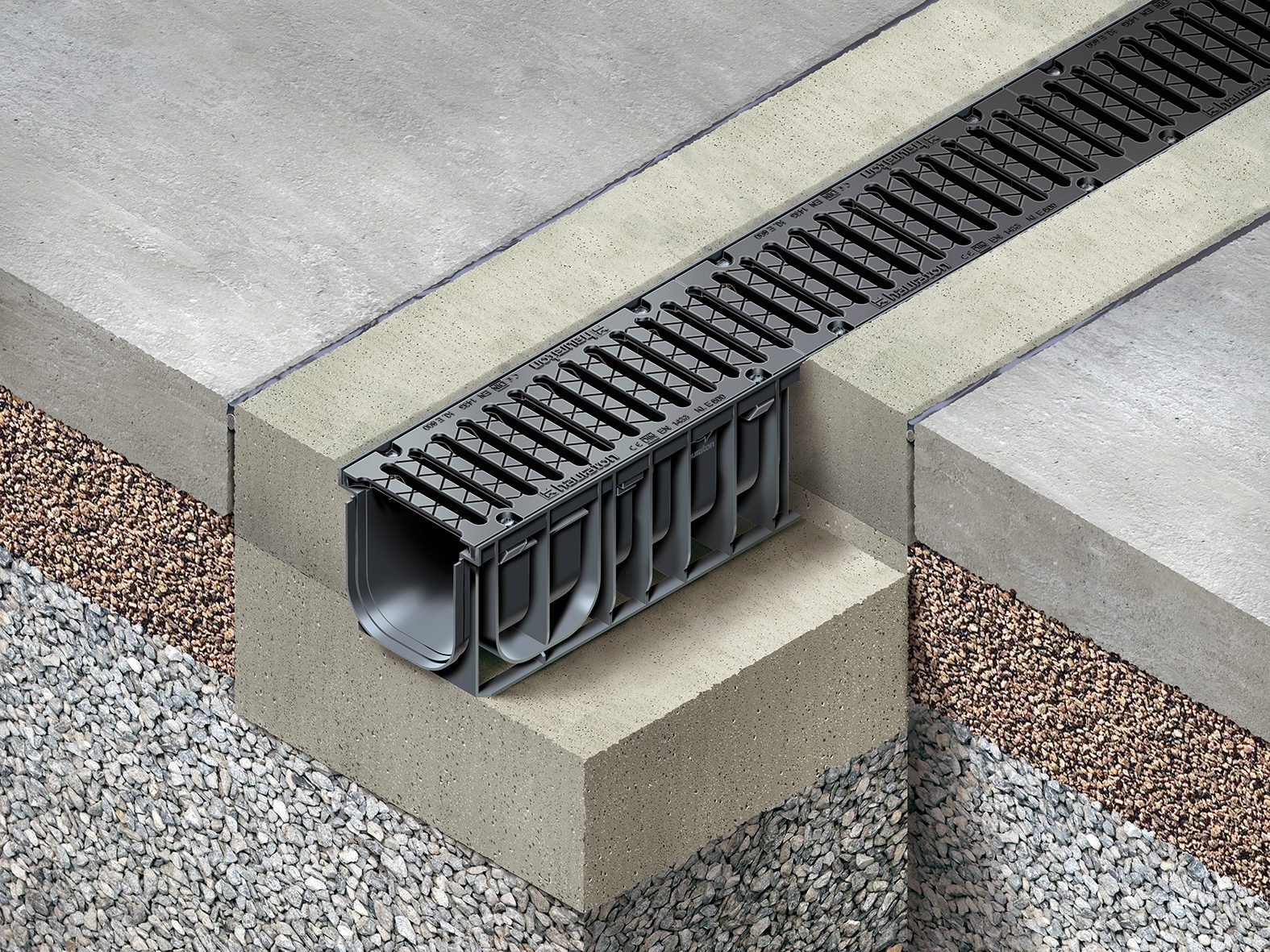 The Hauraton RECYFIX® NC range offers extra heavy-duty channel and grate systems suitable for heavy industrial applications such as roadways, airports, warehouses, and applications where forklifts and cranes may traverse.